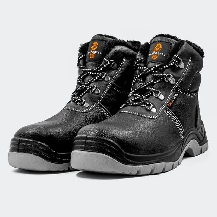 Зимние защитные ботинки на двухслойной ПУ/ПУ (полиуретановой) подошве - отличный выбор для работников от сельского хозяйства до горно-металлургической промышленности. Обувь изготовлена из микрофибры толщиной 1,8-2,0 мм, устойчивой к воздействию агрессивных внешних факторов. Носок защищен металлическим подноском с ударной нагрузкой до 200 Дж. Ботинки утеплены искусственным мехом. Подошва изготовлена литьевым методом, устойчива к воздействию кислотно-щелочных веществ (до 20%), масло-бензольных соединений и нефтепродуктов. Дополнительный комфорт для ног и защиту от ударных нагрузок обеспечивают амортизатор в пяточной части ботинка и мягкий кант, защищающий голеностоп. Глухой клапан предотвращает попадание нетоксичной пыли, влаги и грязи внутрь
